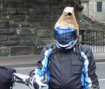 La tercera es brutal con esa base metalica lista para sacarte la oreja, igual que la webcam apernada al casco como para clavarte el perno en pleno craneo en el caso que se caiga un piedra.