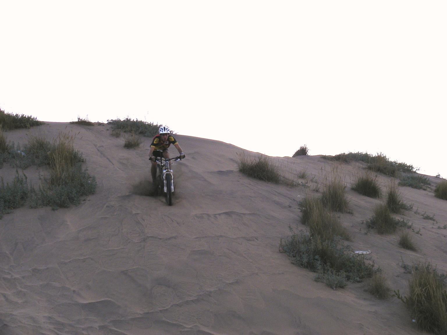 Yo una vez intente hacer dunas en pichidangui, pero creo que era muy novato y no sabia mucho. Al rato de tanto enterrarme opté por ir a andar a la arena mojada que era mas dura. Luego me dedique a cruzar un «riachuelo» que se formó por las lluvias. Obviamente, la bicicleta despues tuve que desarmarla para poder limpiarla y sacar la arena de todos lados.