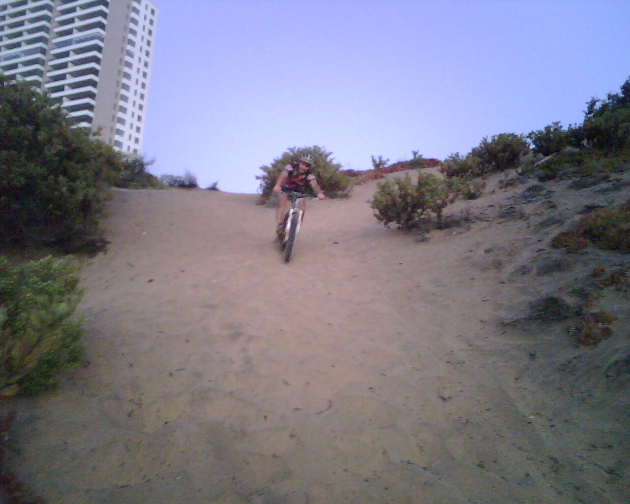 pedaliando a full ya que para ese lado se forma una capita de arena dura como una costra por efecto de la sal, la llovizna o brisa marina y el sol, claro que se rompe al pasar