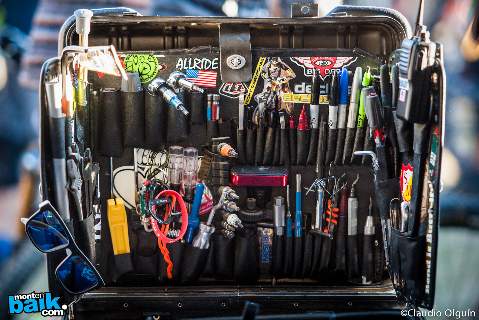 La maleta del mecánico tenia algo mas que cosas para arreglar bicicletas; lentes, pulseras, rayos doblados, lápices, radio, llaves y mucho mas.