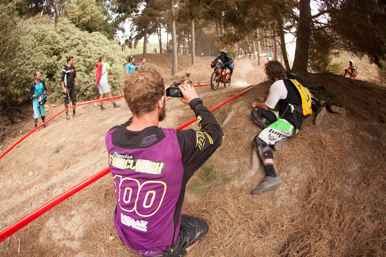 - 14 February 2015 – Fabien Barel inspects his brakes after he got some course tape wrapped around his wheel during Day 4 of the 2015 Andes Pacifico Enduro stage race near Matanzas, Chile. Photo by Gary Perkin