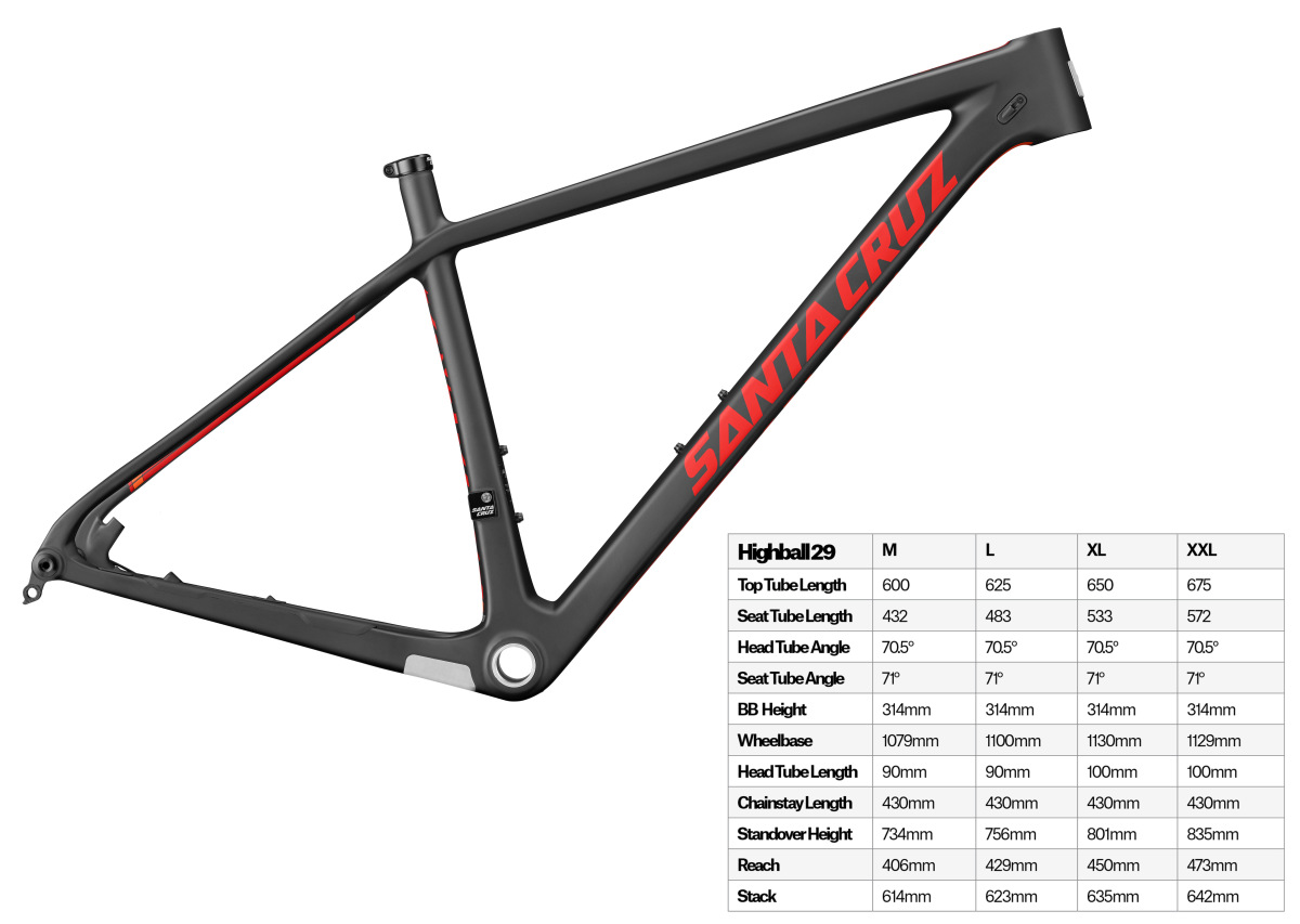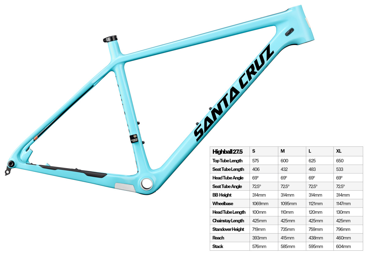 Santa Cruz Bicycles lleva unos años imparable a la hora de crear modelos de doble suspensión. Tallboy LT, de las primeras 29″ en recorrido de 140mm, Bronson, de las primeras enduro en 27.5”, Nomad, el enduro redefinido… No cabe duda que la capacidad de Santa Cruz para crear modelos de doble suspensión que marquen tendencia en el mercado es un hecho. Pero, ¿que pasa con las rígidas? La Highball 2 es bienvenida por doble motivo. Por un lado, porque estaba claro que había llegado el momento de una renovación, por otro lado porque crearla en 29” y en 27.5” es todo un argumento de ventas doble. Además, se quitan de en medio el ‘marrón’ que significa hacer una geometría correcta en talla S de 29”. Si, no hay talla S en el modelo de 29”, pero si hay talla XXL (la 27.5” se queda en XL). El resultado son 8 tallas diferentes para un mismo modelo, 4 en 27.5″ y 4 en 29″. Ofreciendo la Highball en 27.5” puedes hacer un cuadro más ligero y ofrecer una geometría mucho más optimizada. Si echas un vistazo a las tablas de geometría, por ponerte un ejemplo en las tallas M de ambas medidas de rueda, hay muchas diferencias. La 27.5” es más larga entre ejes, tiene las vainas más cortas, el ángulo de dirección más lanzado y el de sillín más vertical. Muchas diferencias para tratarse de dos modelos basados en el mismo cuadro y con la misma talla. ¿Que quiero decir con esto? Que a la posibilidad de elegir entre dos medidas de rueda, le tienes que sumar el que las diferencias geométricas te otorgarán comportamientos totalmente distintos. Y esto lo ha hecho muy bien Santa Cruz, porque a pesar de que las bicis se vayan a comportar muy distintas, han tratado sobre todo en el modelo de 29″ sea mucho más dinámico que la Highball anterior de carbono. En este sentido hay muchos cambios geométricos y todos en una línea muy lógica; 9mm menos de vainas, 16mm más de tubo superior y 10mm menos de tubo de dirección. Pequeños grandes cambios.