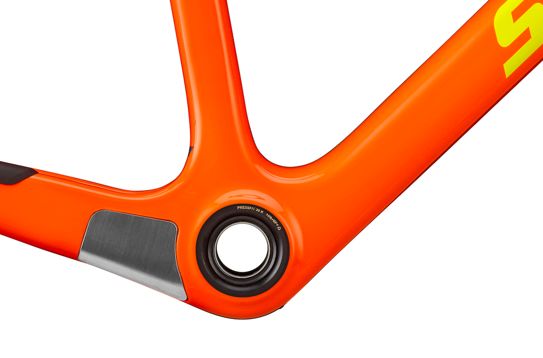Nos gusta la Stigmata CC. Si y nos gusta que Santa haya aportado soluciones tan lógicas como los ejes pasantes en ambas ruedas (142mm detrás y 15mm delante), los anclajes de frenos post mount, el guiado interno de cables y la novedad de la caja de pedalier PF30 Press Fit, la primera de Santa Cruz de este tipo. El resto de bicis de la marca californiana, monta ejes de pedalier roscados. El PF30 tiene la virtud de que se puede montar todos los tipos de biela, pero si no usas unas con eje de 30mm tendrás que andar poniendo adaptadores para ejes de 24mm y eso os aseguro que es un suplicio. Es decir, si te compras el cuadro suelto, monta bielas para PF30 directamente o te acordarás de mi cuando empieces a cambiar rodamientos y cazoletas…