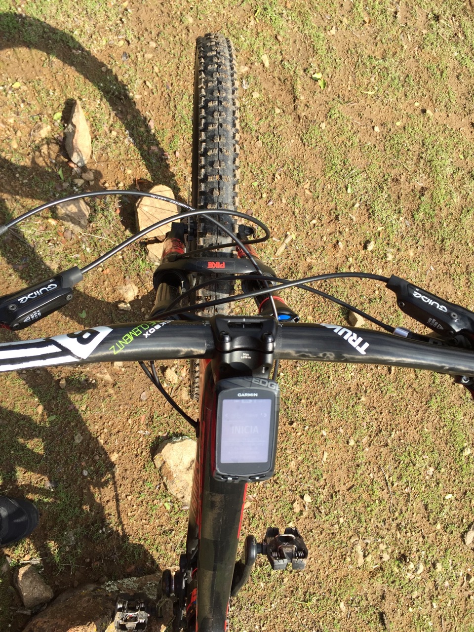 El rider mide 1.69 y pesa 70kg, esta usando el shox con 30% de SAG y la Pike la tiene con un token con 50-55 PSI y cuatro clicks en la compresión.