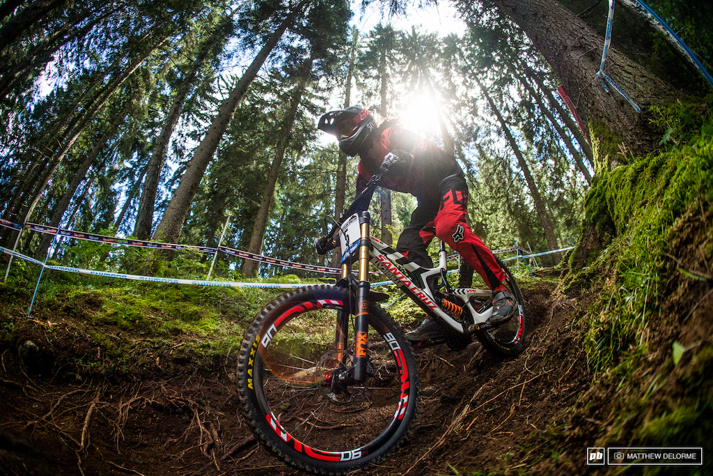 Como les comentaba el dÃa de ayer, la final de la Wolrd Cup de DH esta en llamas!. La historia ya esta escrita en los Junior y las Mujeres, pero en los Hombres Elite aun no esta todo resuelto. Tenemos a Aaron Gwin, Greg Minnaar, y Loic Bruni luchando por quedarse con el titulo esta temporada, y son pocos puntos los que separan a estos corredores del primer lugar. Lo claro es que Aaron Gwin tiene todo listo para celebrar, al no ser que se lo rapte alguna nave extraterrestre durante la carrera!.