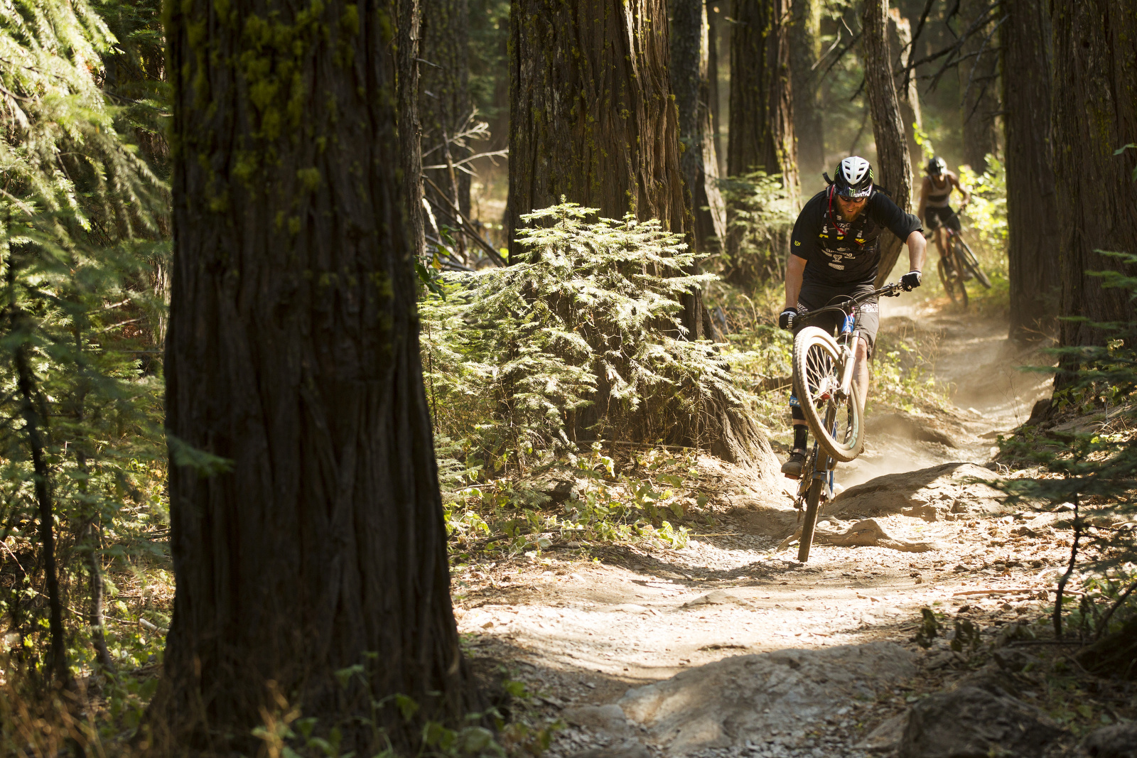 Al primero que fuimos fue Mils Peak al cual se accede en una van y después se continua pedaleando unos 30 minutos por senderos y caminos entremedios de bosques de pinos. La bajada era un manjar, un sendero hecho para bicis con harta roca con una pendiente moderadas a la cual había que meterle pedaleo para ir bien rápido. Así todo muy entretenido.