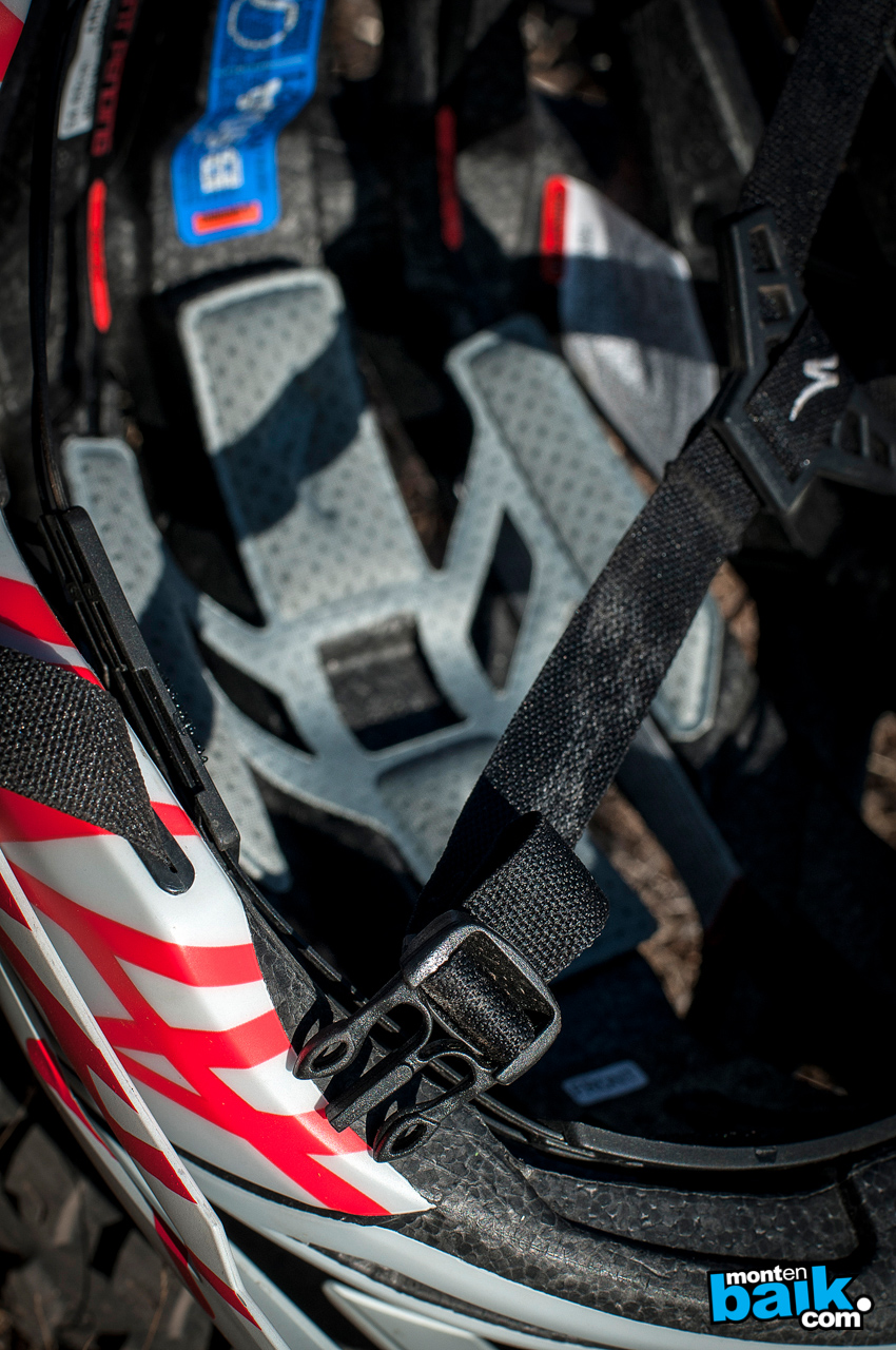Cuando lo vi en detalle debo reconocer que me sentí escéptico del sistema Tri Fix (pieza de plastico que une las tres correas de cada lado), ya que no tenia ajustabilidad y para mi ese es uno de los lugares donde más juego peleo con el ajuste de las correas en un casco.