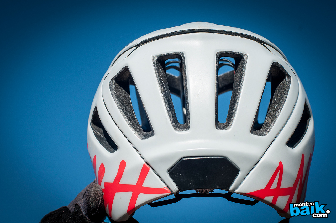 La ventilación del casco tal como lo mencionaba anteriormente esta muy bien diseñada y tiene un muy buen funcionamiento. El aire entra directo en la frente disminuyendo la transpiración en esa zona y luego circula muy bien entre la cabeza y casco saliendo por las ventilaciones traseras diseñadas específicamente para expulsar el aire. A pesar de las protecciones de atrás y a los lados el casco es muy ventilado.
