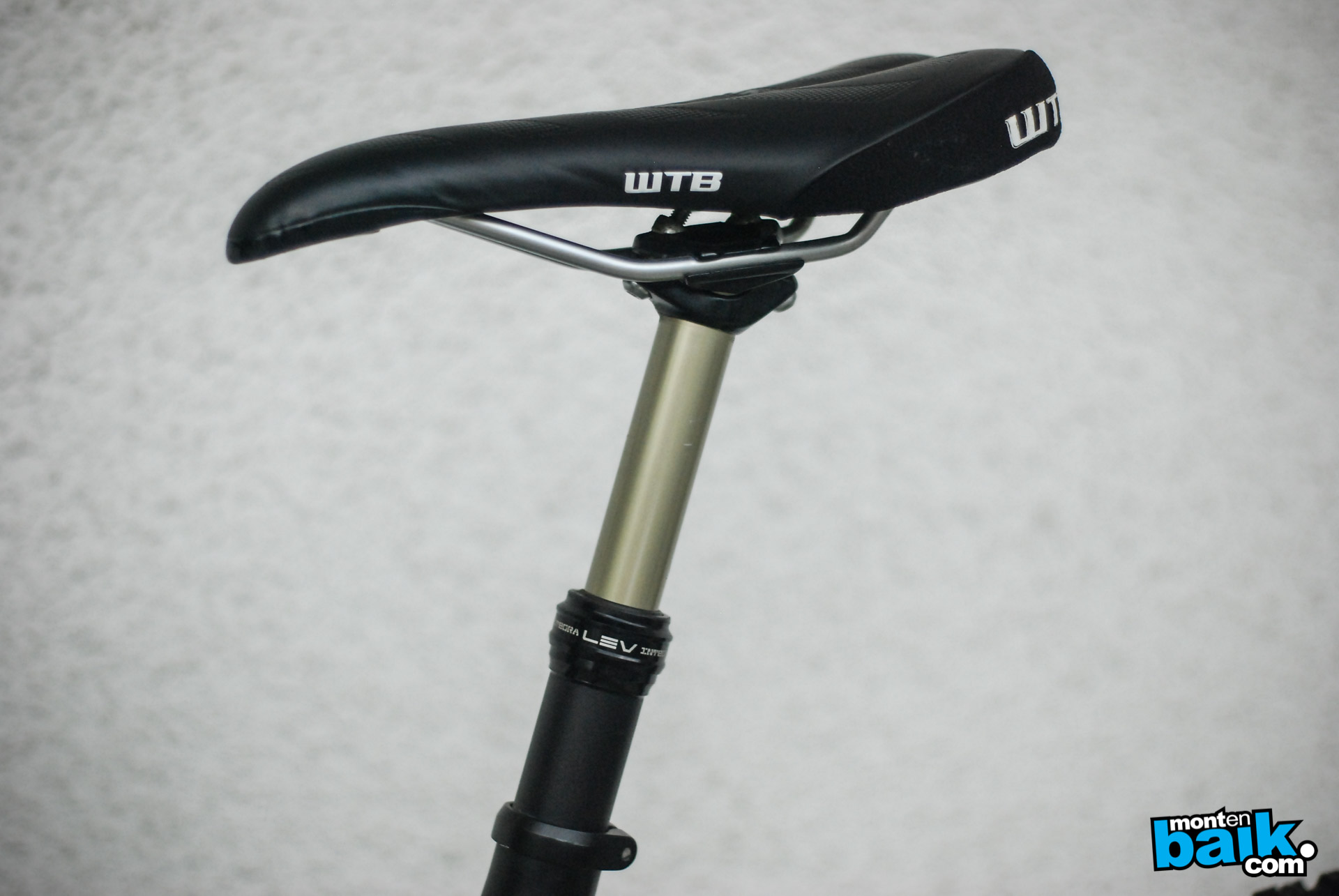El tubo de asiento es una KS Lev de 125mm de recorrido. El Asiento es un WTB Silverdado el cual lo tiene apuntando un poco hacia abajo ya que es la forma que más le queda cómoda en la subidas.