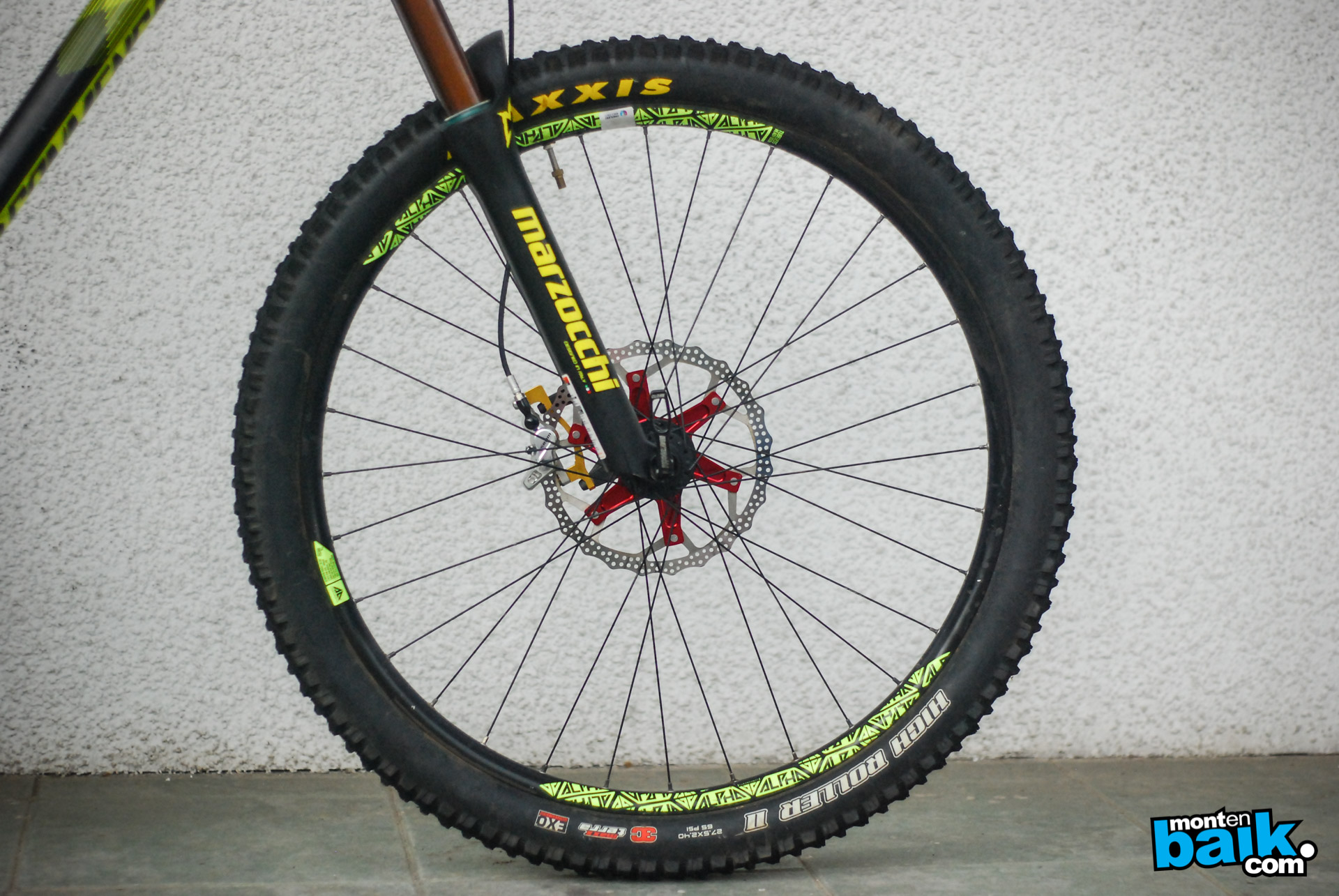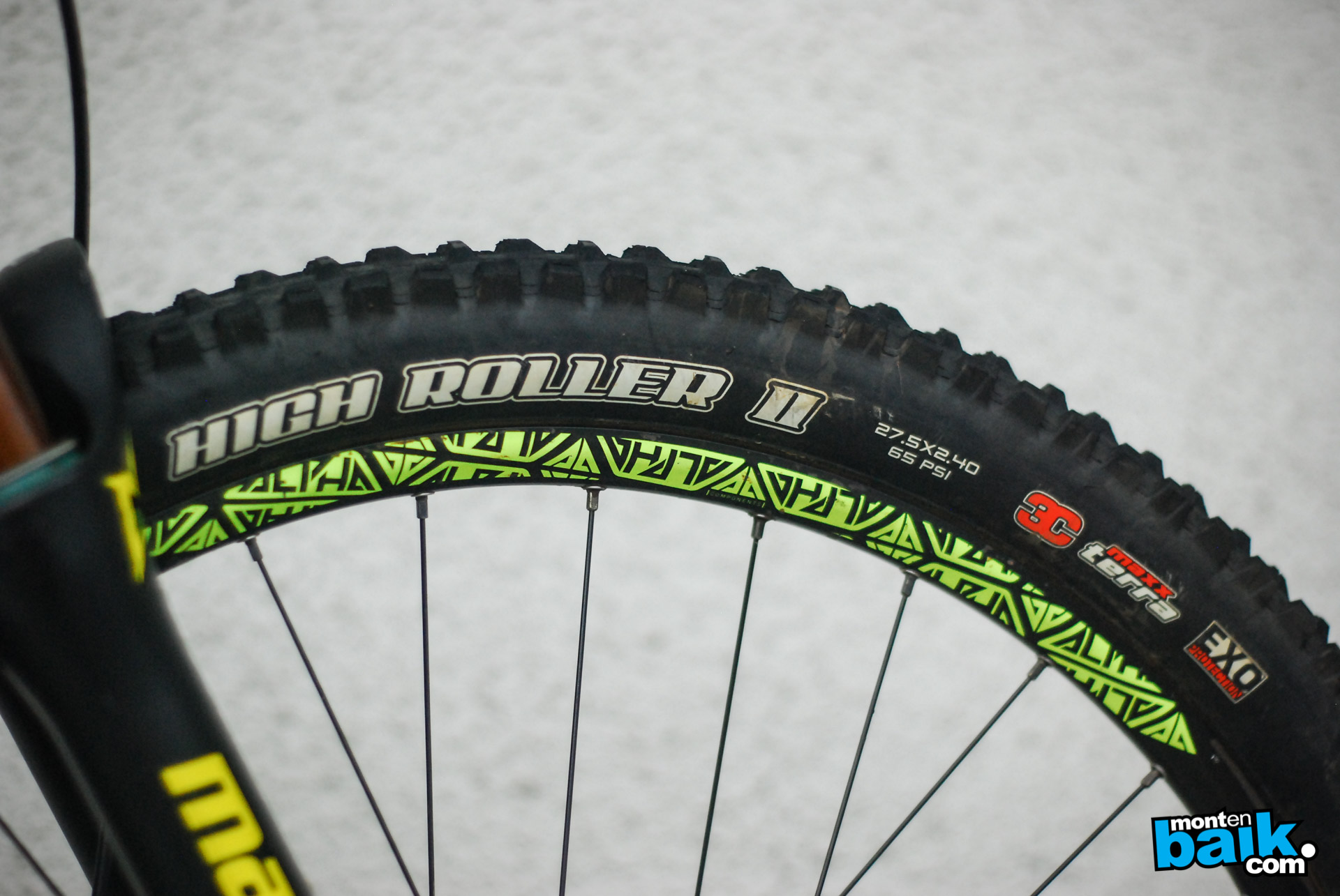 High Roller II, 3C es uno de los neumáticos delanteros preferidos para Pedro Ferreira el cual usa tubular. La rueda delantera es una Commençal Alpha.
