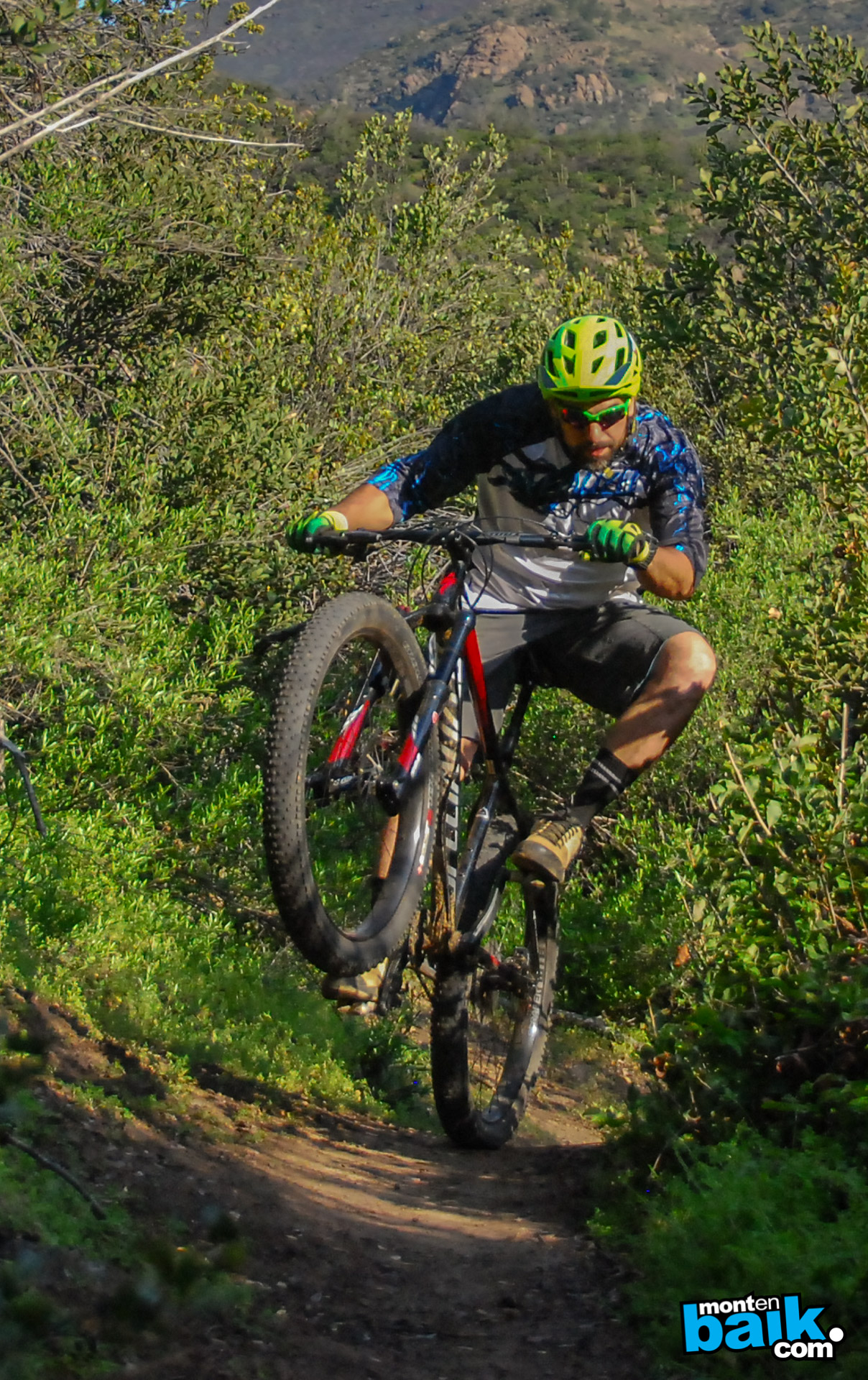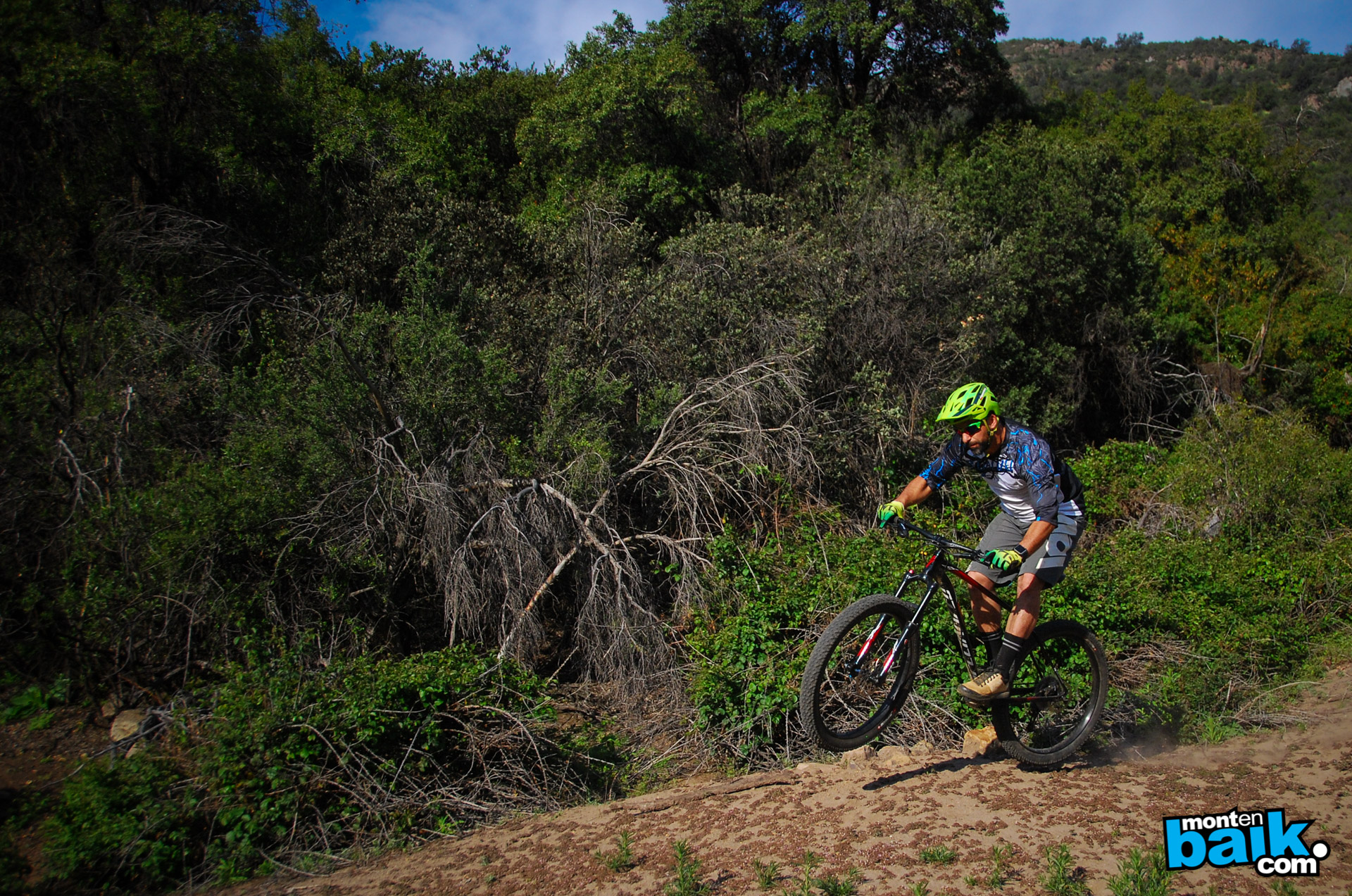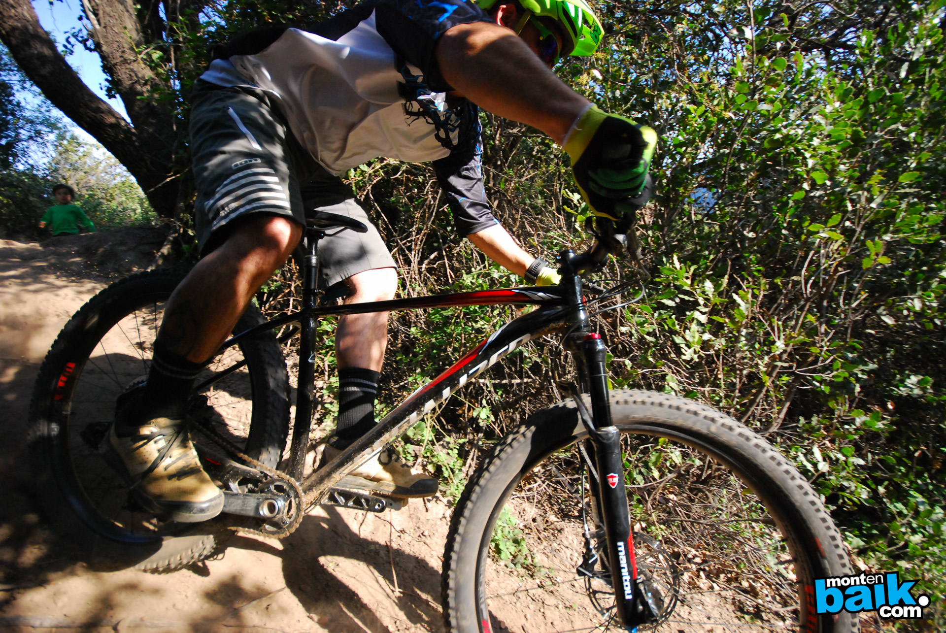 En el sendero de cordillera ya comencé con buenas sensaciones, este sendero tiene muchos cambios de ritmo con subidas cortas y bajadas cortas, todo el tiempo te pide que lleves buena velocidad y es bastante angosto, con contrapendiente y piedras, lo que primero me llamo la atención es la inercia que toma la bici, cada vez que la cargas contra el suelo en las curvas te da un impulso extra, luego una subida técnica de piedras a baja velocidad y pones a prueba la tracción de los neumáticos, impresionante, pasas todas las zonas de subida técnica sin problemas y viene la bajada, corta pero intensa, muy suelto el terreno y la bici se agarra bien, de echo cuesta un poco tomar confianza ya que el limite esta mas allá de lo que esperas al ver la bici.