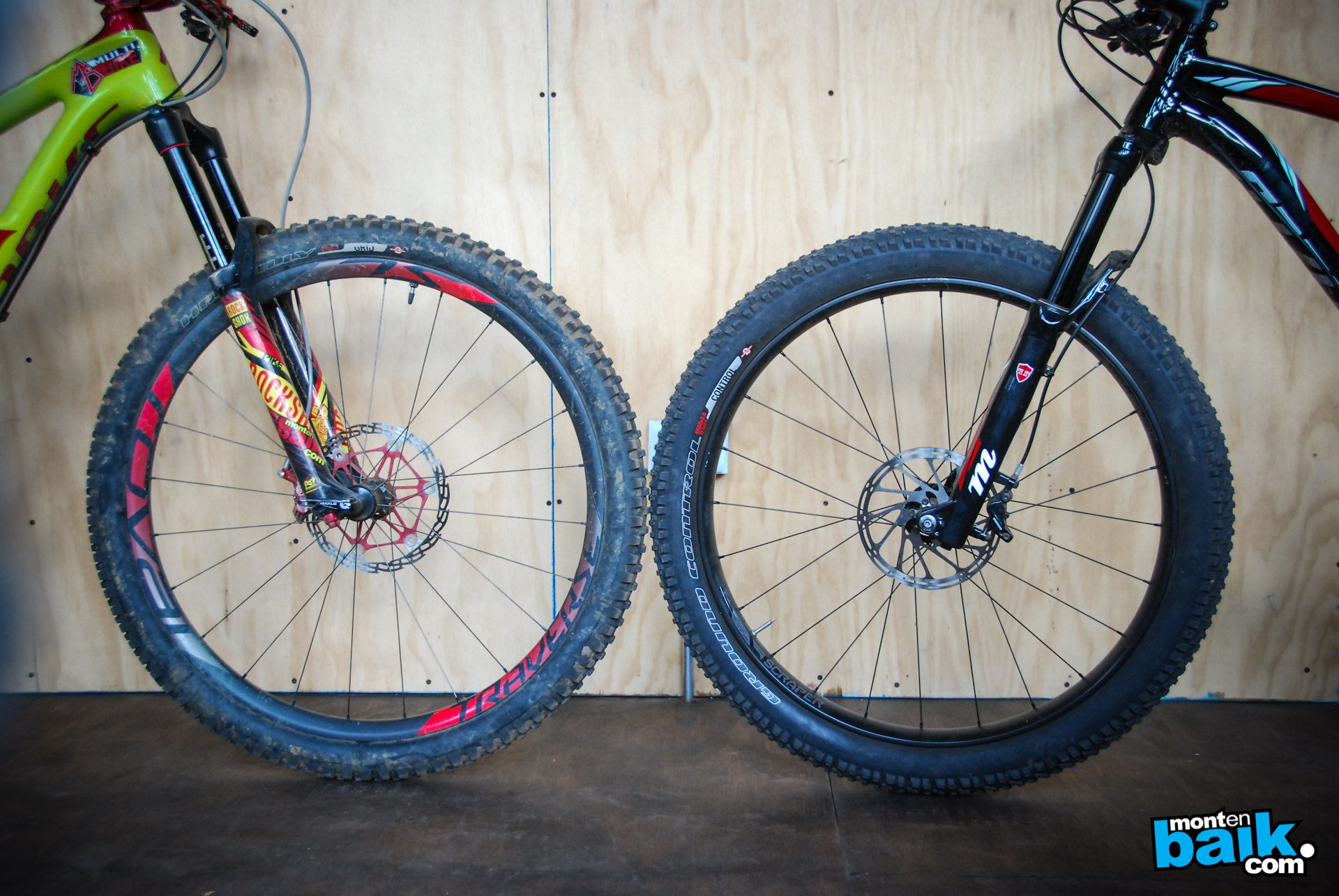 Voy a detenerme un poco en las ruedas y este formato 650B+, a principio de año tuve la suerte de probar este formato en una Stumpjumper 29er EVO, con ruedas traverse fattie 650B y neumáticos Specialized Ground Control 27,5 x 3.0, la verdad es que fue una sorpresa, desde que instale esto pensé que esto era un experimento mas y que nada supera lo que ya tenemos en el mercado, pero me sorprendió, la bici iba muy bien pero sentí que cuando la forzabas mucho el neumático con 15 psi tendía a flectar cuando le exigías mucho. Bueno ahora eso desapareció!! Las nuevas llantas WTB Scraper de 45 mm interior hacen que el neumático tome una forma perfecta, esto hace que el neumático aumente en un 69% el contacto con el suelo en comparación con una rueda normal y el volumen total del neumático es un 56% más.