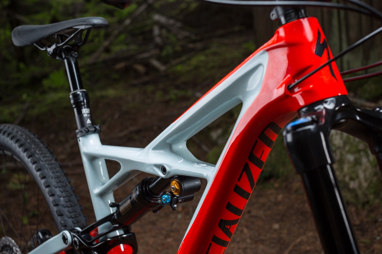 La Sworks y la Pro vienen con el shock Custom Öhlins STX, Single Tube design, Rx All-Mountain Tune, 3rd Chamber air spring technology. Los otros modelos viene con el RockShox Monarch Plus, Rx All-Mountain Tune.