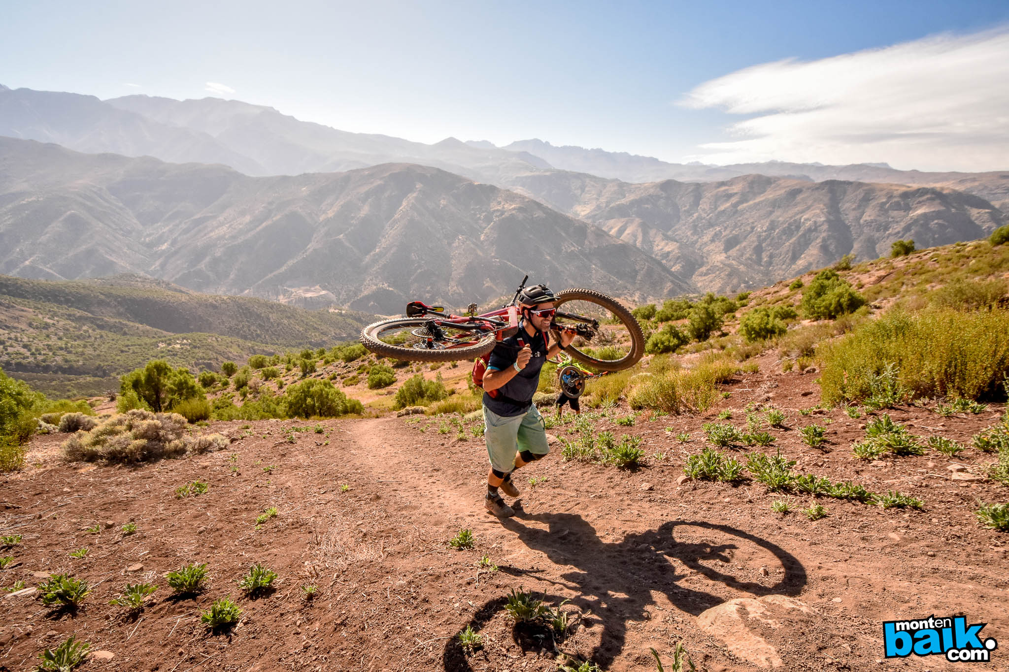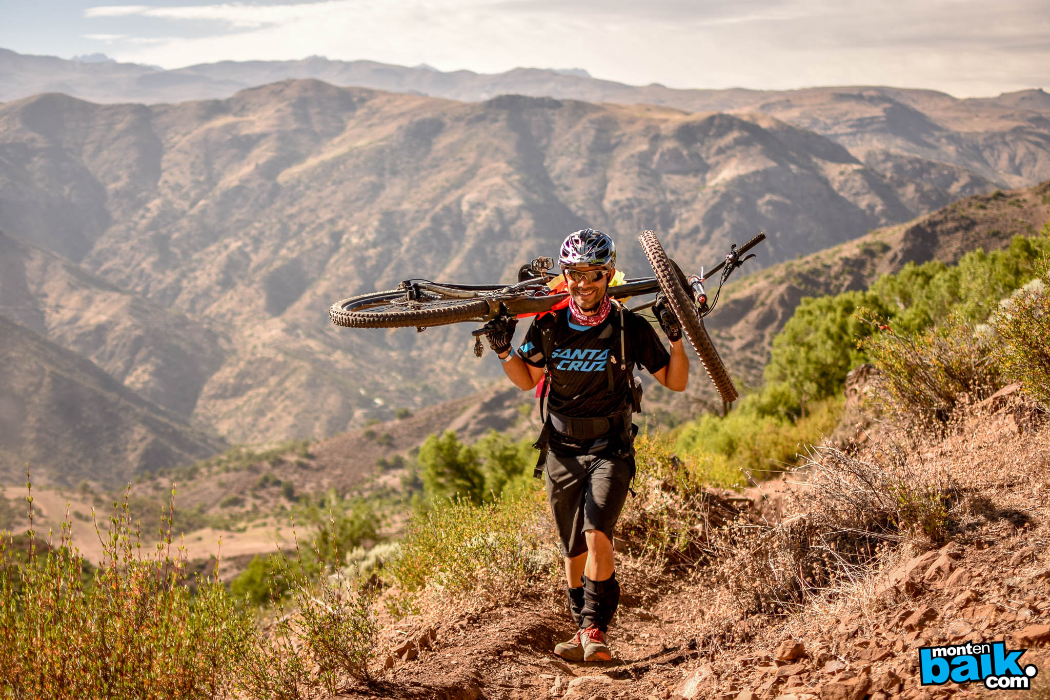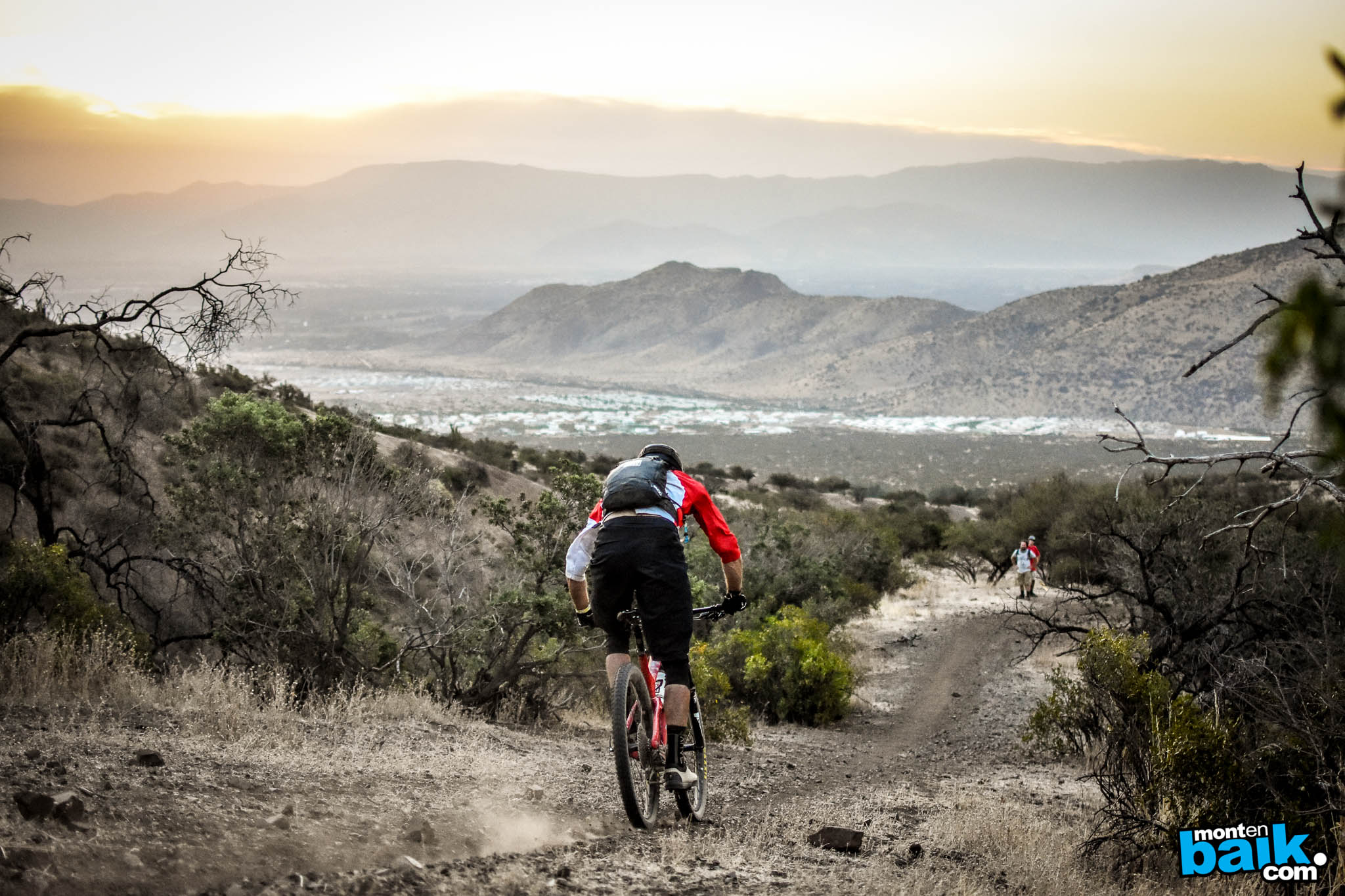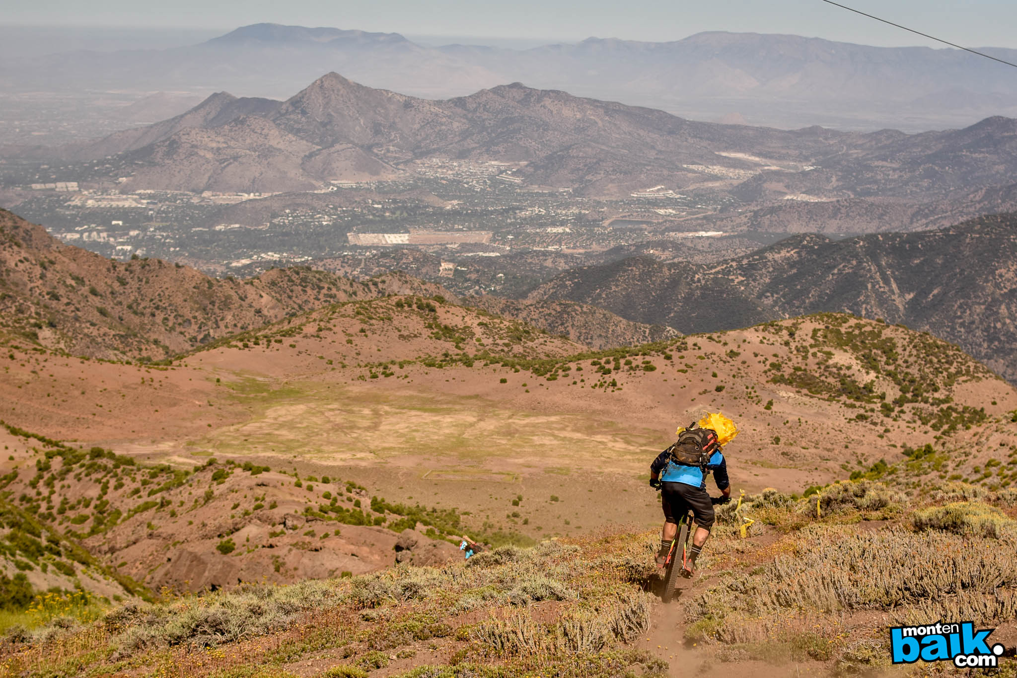 Después de dejar todo listo, la caravana llevó a los pilotos directamente a la base de Nido de Cóndores donde toco prender las piernas con un enlace de una hora y media en el que hubo mitad pedaleo mitad empuje para llegar a un mirador con una tremenda vista hacia Santiago.