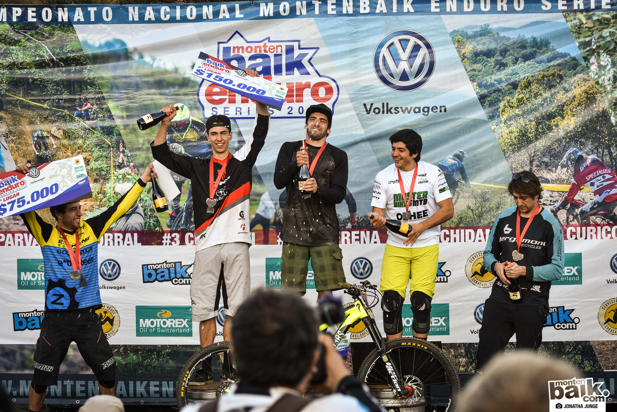 1- Felipe Vial (17:45.46) 2- Pedro Burns (17:53.19) 3- Milciades Jaque (18:00.01) 4- Pedro Ferreira (18:10.51) 5- Mauricio Acuña (18:25.83). Los ganadores de la general de la 3a. fecha del Montenbaik Enduro Series 2018 en Curacaví.