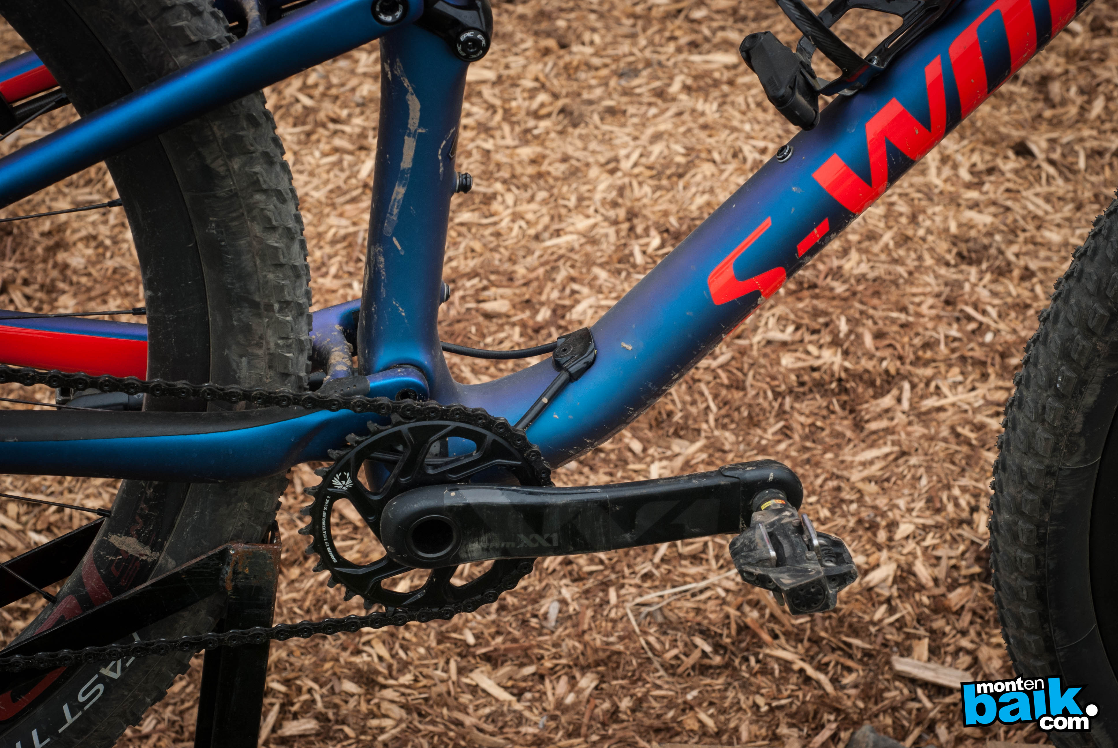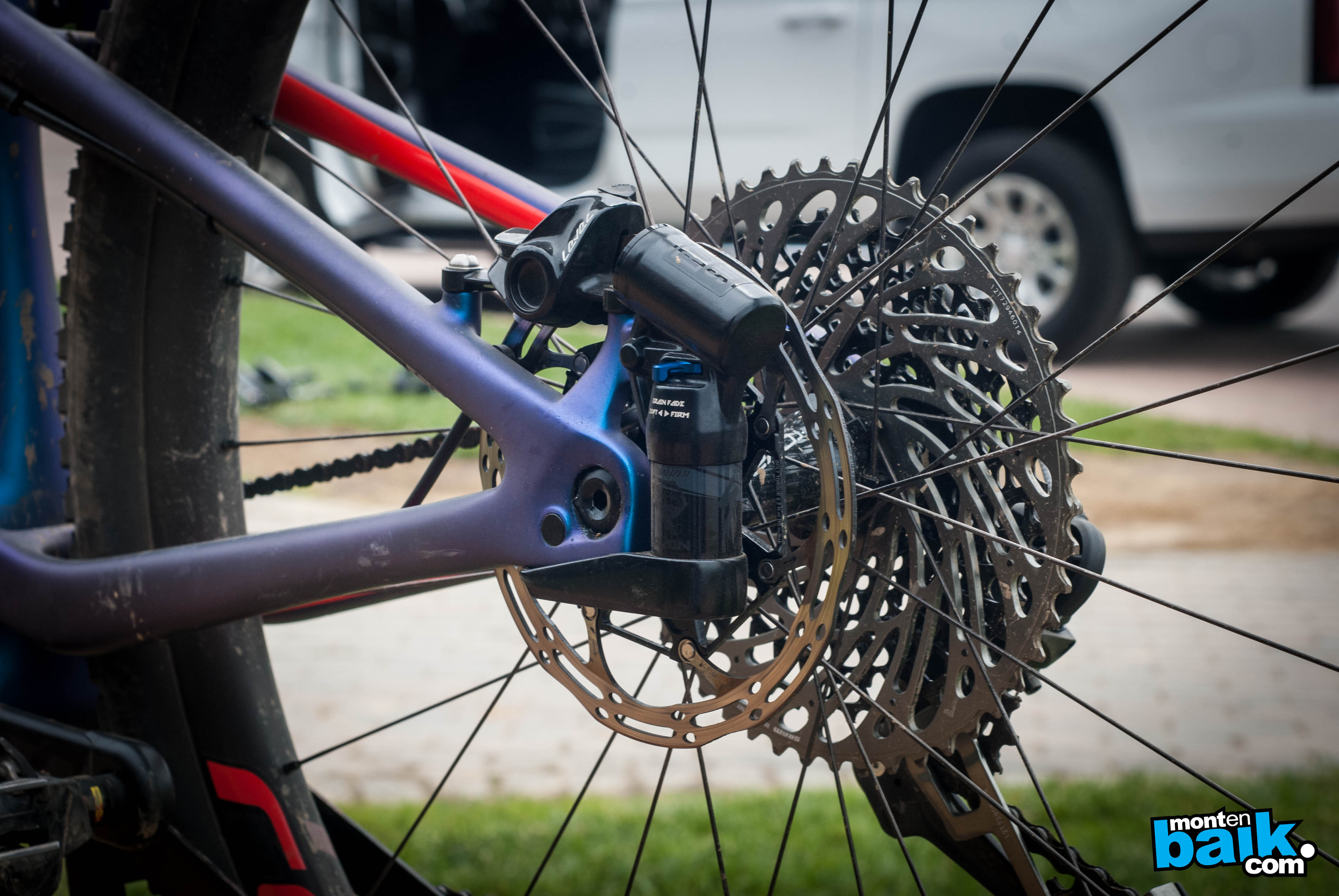 Para que me entiendan, la manera más sencilla de explicar el principio del BRAIN es, una válvula de inercia que se percata de cuando los golpes vienen desde abajo o cuando vienen desde arriba, con esto eliminan completamente el bamboleo típico de las bicis dobles y queda prácticamente como una bici rígida. Para los más detallista podrán darse cuenta que la alianza con FOX se acabó y hoy es todo construido por Rock Shox.