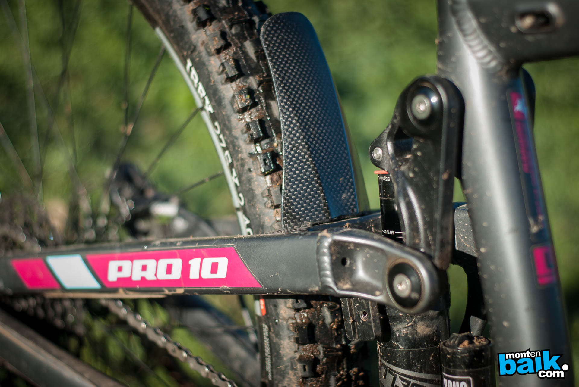Las ruedas son masas propain y llantas Stans Flow de 29 mm de ancho interior, por lo general vemos que las bicis vienen de fábrica con ruedas que al poco tiempo debemos cambiar. Además incorpora de fábrica un tapabarro de carbono para la rueda trasera, con eso el shock se mantiene limpio.