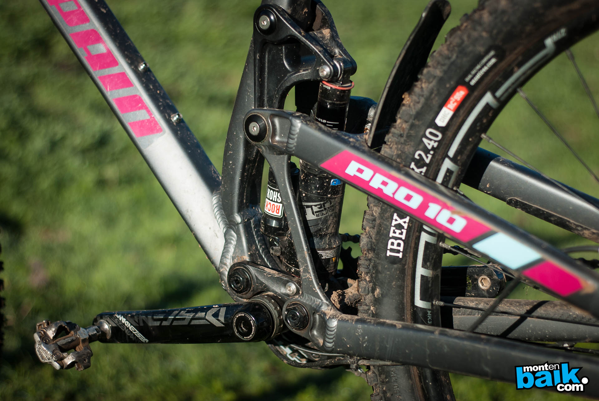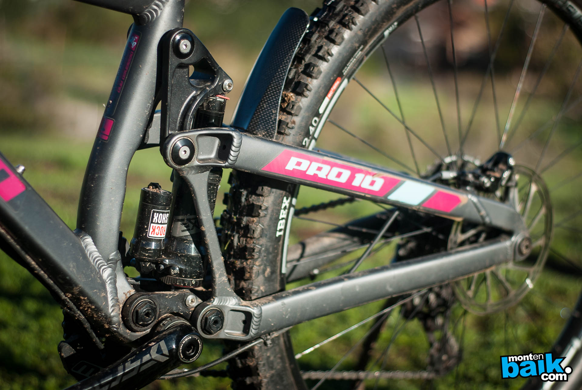 Cuando uno comienza a mirarla con detención te puedes dar cuenta de varios detalles como; el shock se ancla al cuadro mediante dos link, con esto la cola flota mucho mejor y es mucho más activa que las bicis que anclan sus shocks directamente al triangulo delantero. Además me llamó la atención el largo del chainstay (445 mm) y el reach (446 mm).