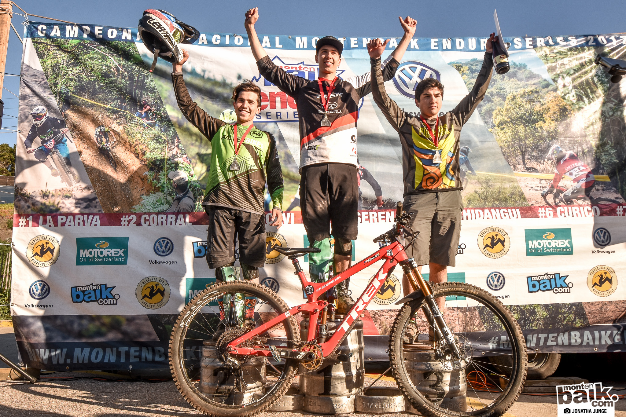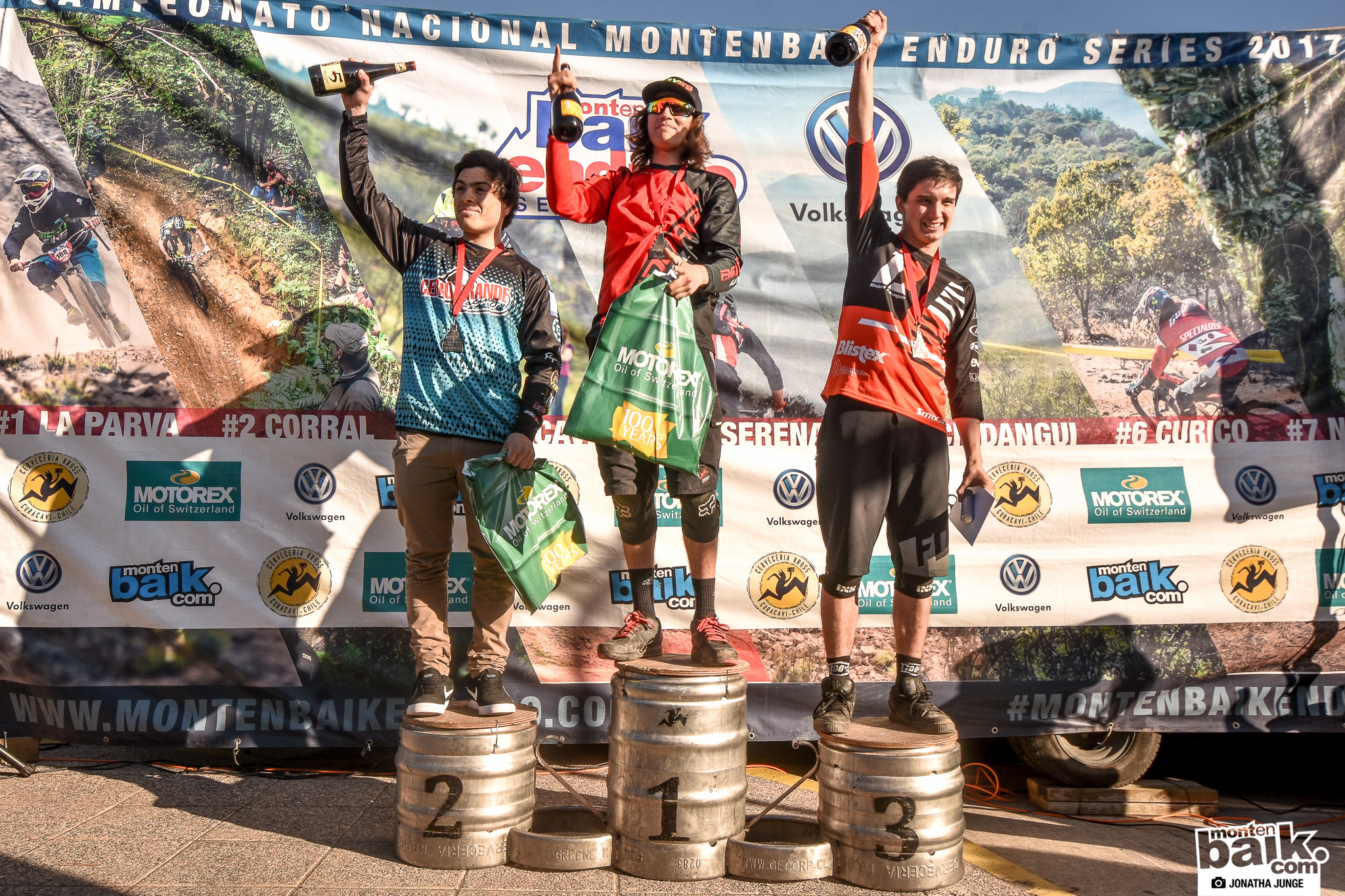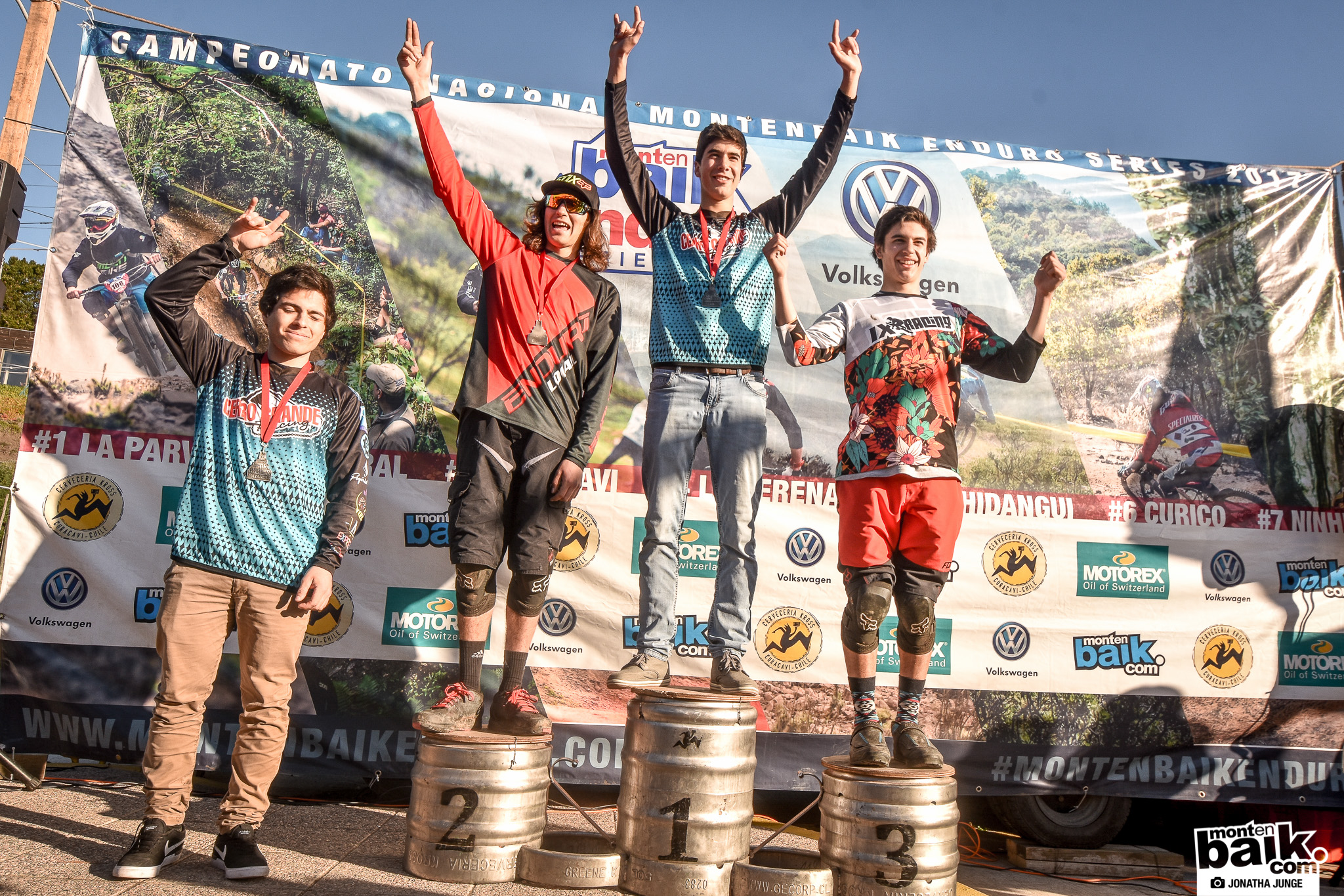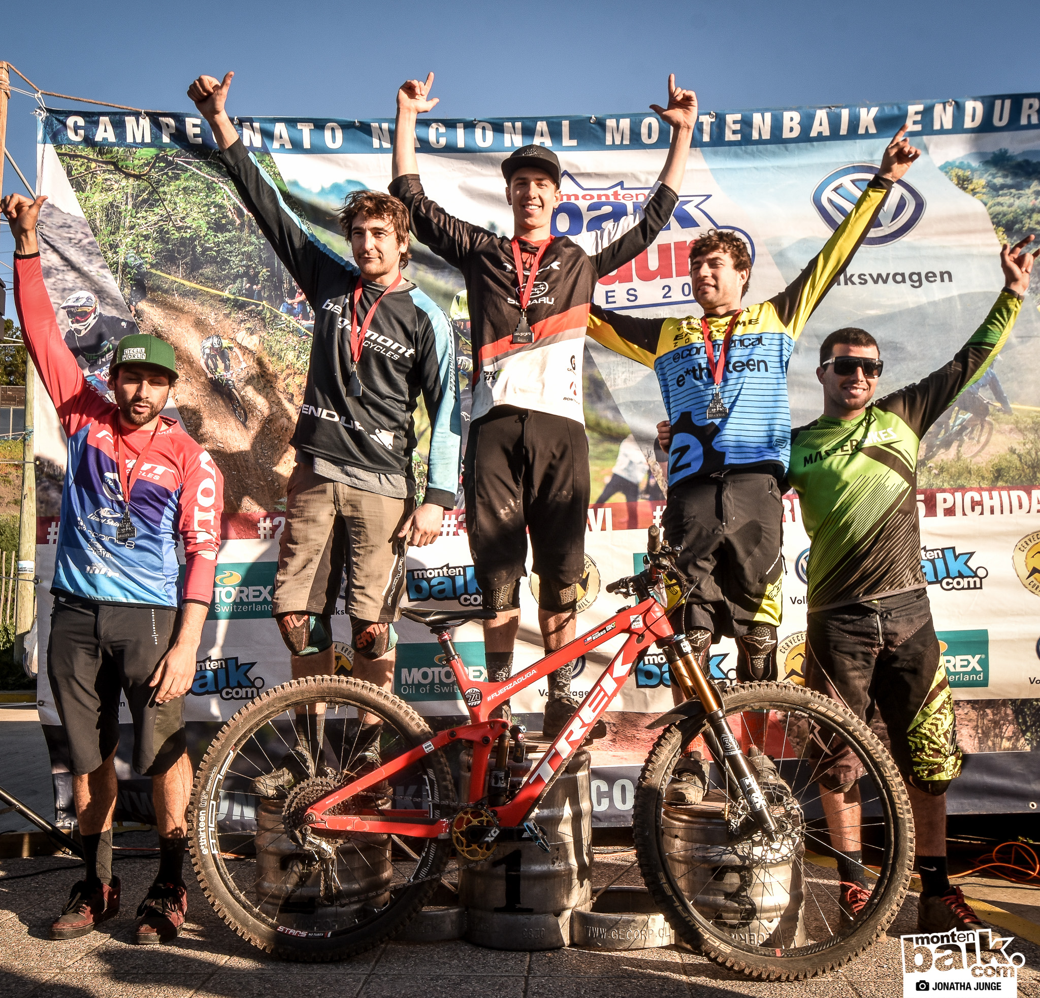 Podio General 6ta fecha Campeonato Nacional Montenbaik Enduro Series. 1er lugar Pedro Burns (17:23:76), 2do lugar Mauricio Acuña (17:33:36), 3er lugar Pedro Ferreira (17:38:36), 4to lugar Jorge Verdugo (17:46:88) y 5to lugar Andreas Kukulis (17:47:34). Felicitaciones a todos!