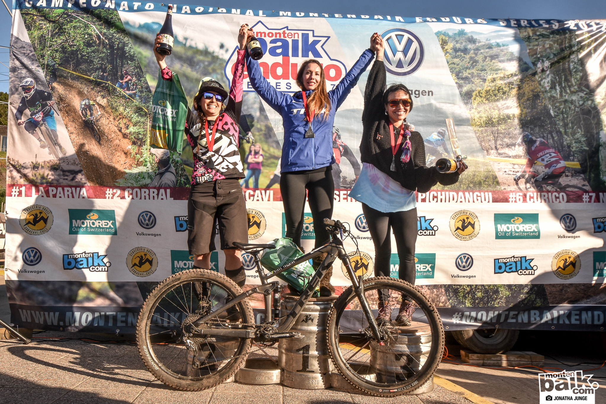 Podio Damas Open 6ta fecha Campeonato Nacional Montenbaik Enduro Series. 1er lugar Florencia Espiñeira (19:16:88), 2do Lugar Antonia Würth (20:52:74) y 3er lugar Laura Munizaga (21:06:77).