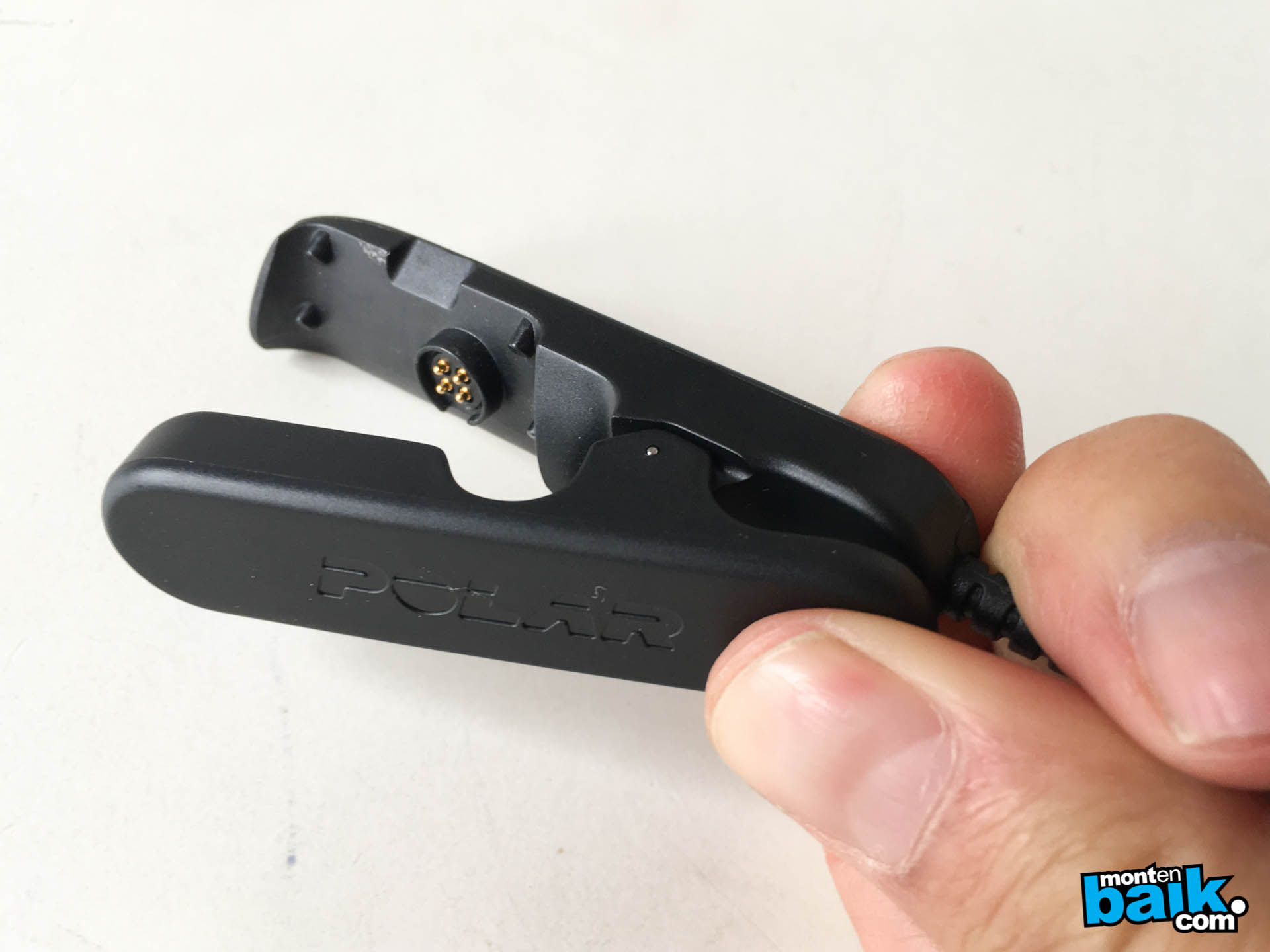 Lo otro que viene en la caja es el cable para cargarlo. Por un lado el cable es un clásico USB y por el otro lado tiene una forma bien curiosa para conectarlo al reloj, para mi gusto un poco rebuscada ya que es como una pinza que hace que se conecte.