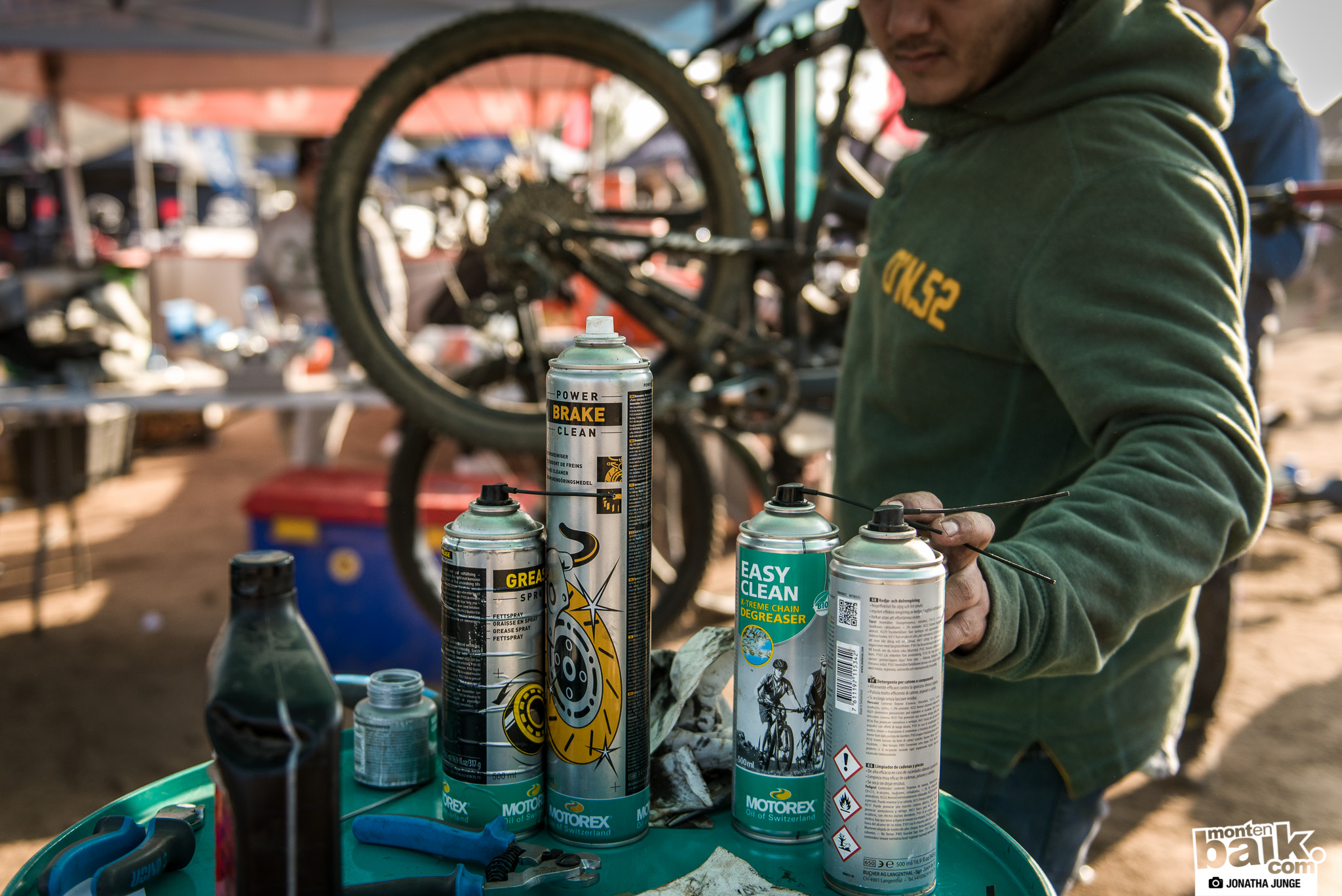 Mecánico y piloto Pablo Flores se siente en casa en la carpa de Specialized, lo pillamos muy relajado antes de partir la carrera.